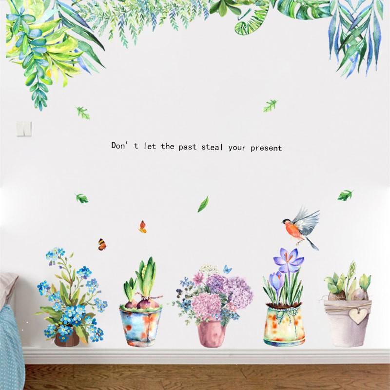 ウォールステッカー ウォールシール 壁紙ステッカー 壁紙シール 絵画風 手書き風 花 木 鳥 蝶 鉢植え 葉っぱ 英語 英文 壁面装飾 壁デコレーショ Zak おとりよせ Com 通販 Yahoo ショッピング